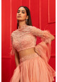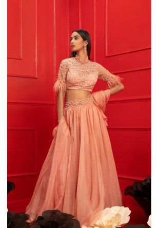 Blush organza lehenga with an embroidered belt, embroidered blouse and an embroidered dupatta in org.....