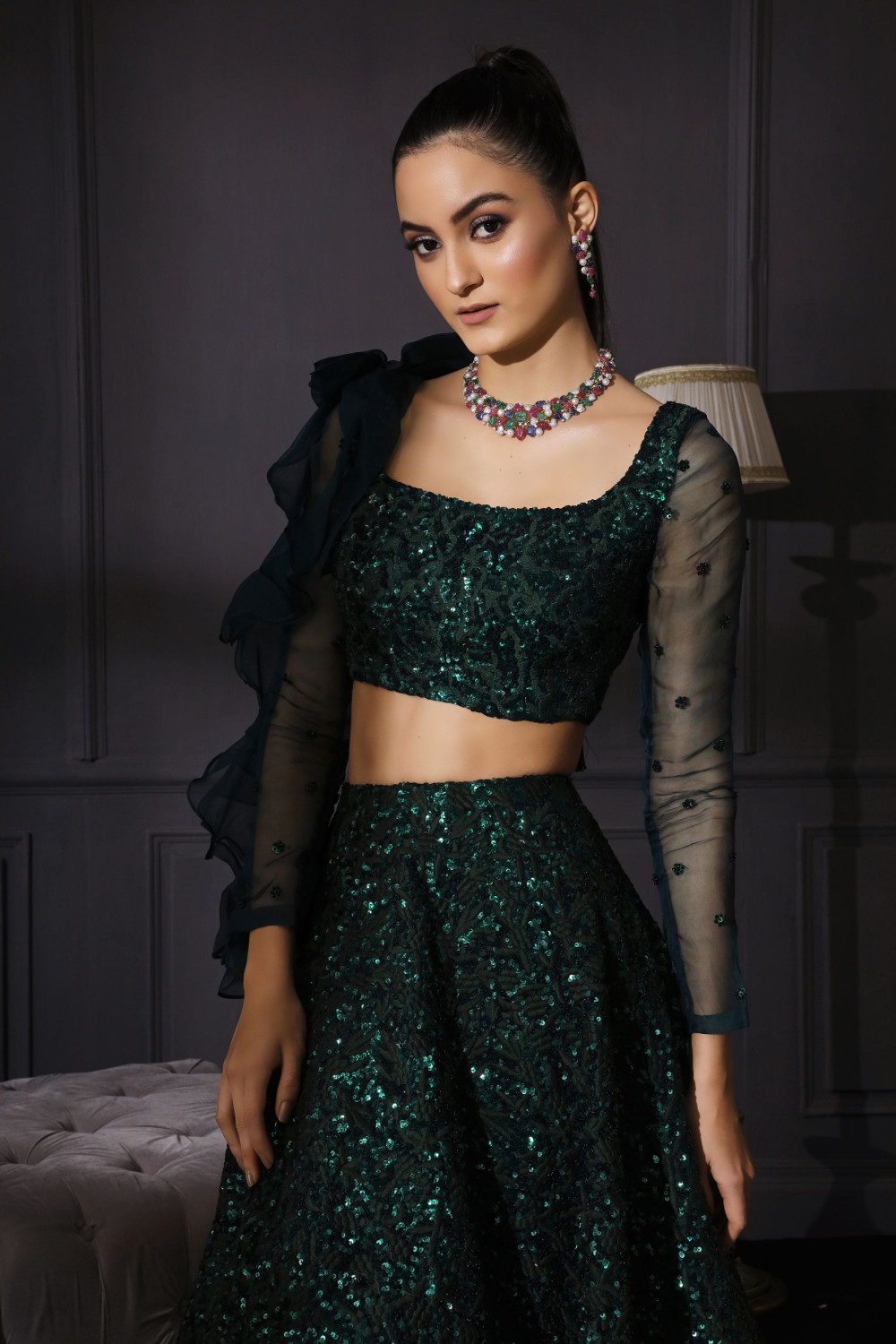 Tags: Arti, Bottle green lehenga, bridal lehenga, lengha