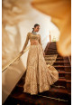 Bue embroidered choga in organza paired with an embroidered cape with an M-logo belt .....