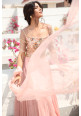 Rose-pink hand embroidered organza embellished cape with an organza sharara and silk bustier......