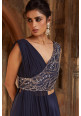 Navy-blue overlap tussar jacket with a front and back asymmetric draped chiffon dupatta and scallop .....