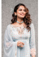 Light blue printed crepe kurta with acrylic and thread hand embroidery on the neckline with a lace d.....