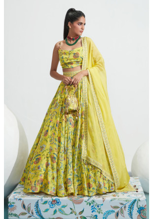 Yellow embroidered lehenga in satin organza with an embroidered blouse and an embroidered organza du.....