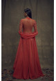 Coral hand-embroidered anarkali in georgette with a turtle key hole neck and a wire-beaded net dupatta