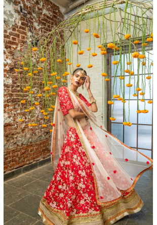 Tags: red lehenga, red lengha, red raw silk lehenga, bridal lehenga