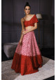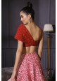 Red and pink ombré lehenga in raw silk and net with hand embellished resham and sequin
