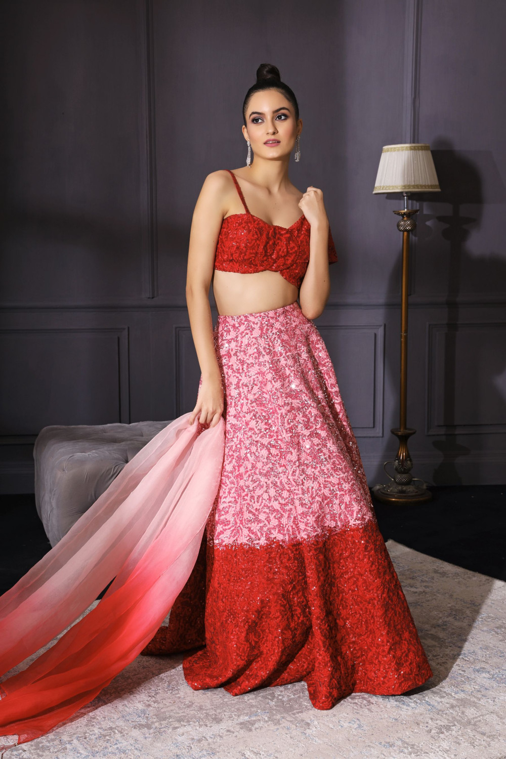 Tags: Juhi, Red and pink ombré lehenga, ombré lehenga, bridal lehenga, lengha