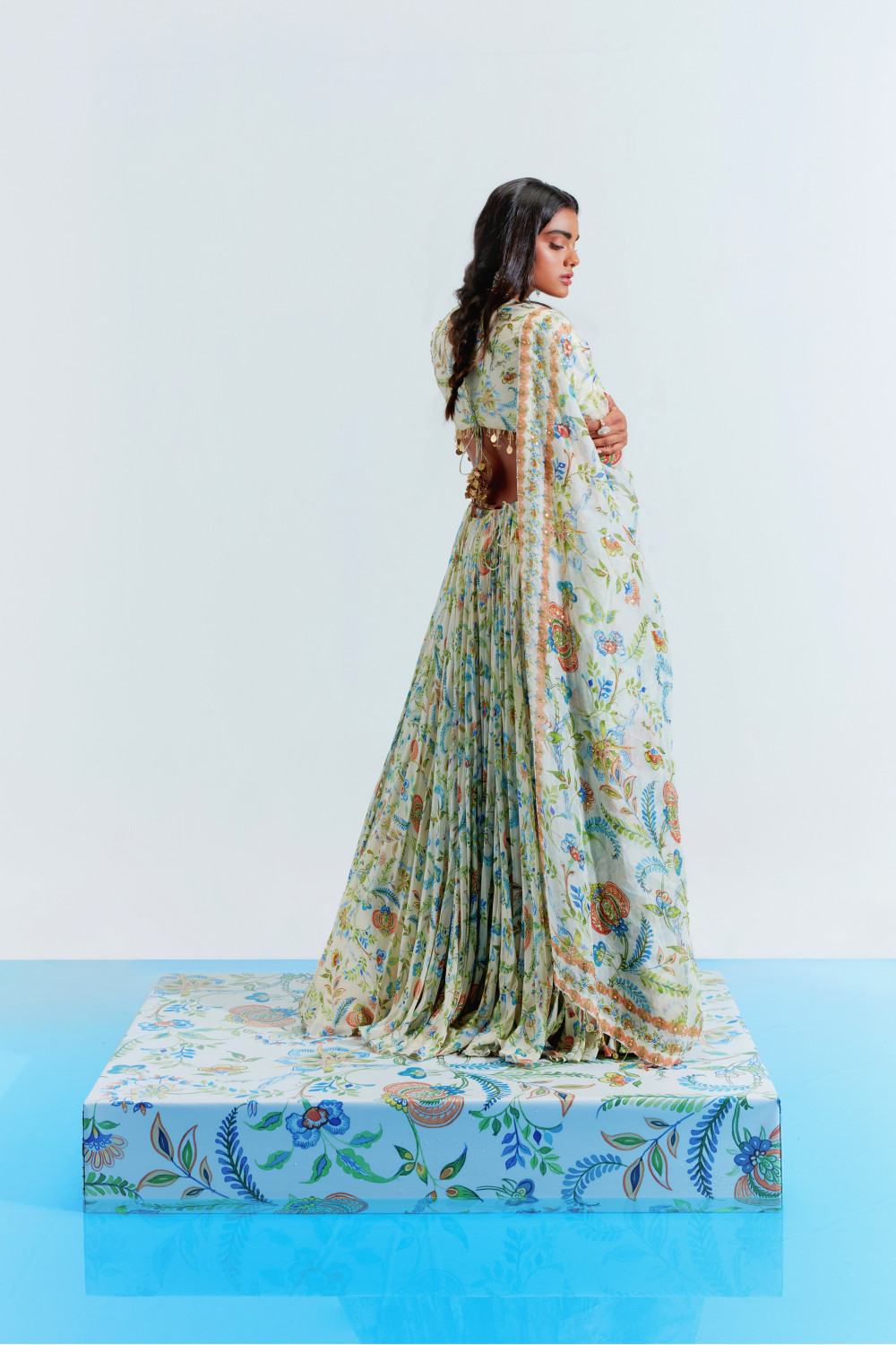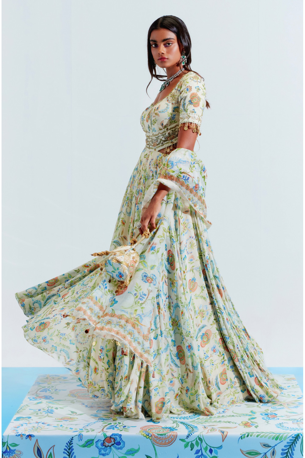 Ivory embroidered anarkali and embroidered dupatta with tassels at the hem
