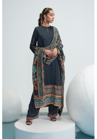 Black satin organza embroidered  kurta, embroidered pant with  organza embroider.....