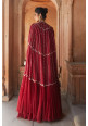 Oxblood scallop embroideredgeorgette and net kimono with line embellished tussar blouse paired with a georgette lehenga