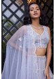 Powder-blue pearl cage embroidered heavy net lehenga blouse and palla
