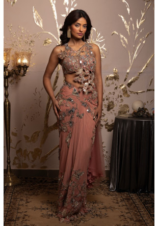 A striking blend of modern allure and artisanal craftsmanship, Akari is a pre-draped cutwork georget.....