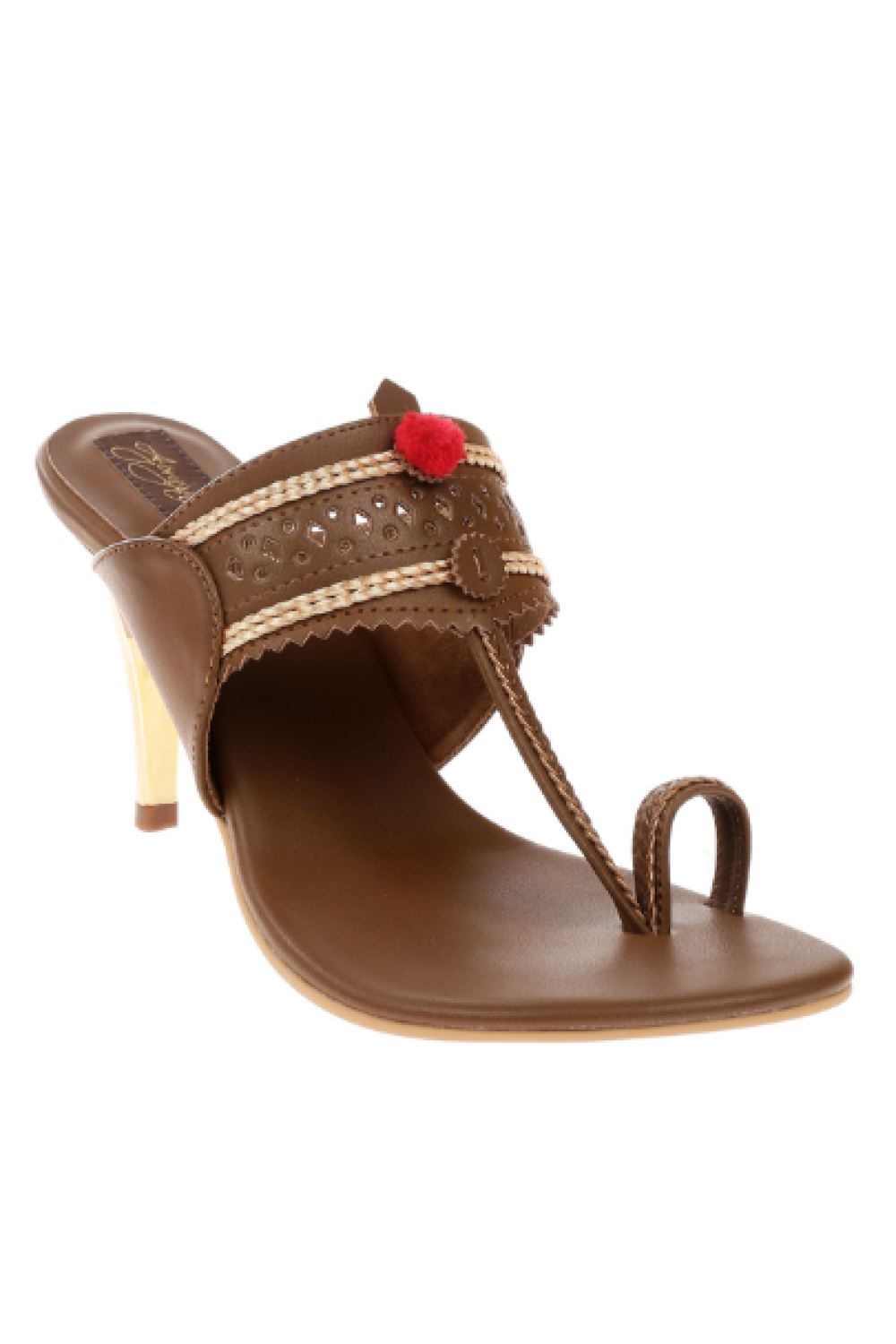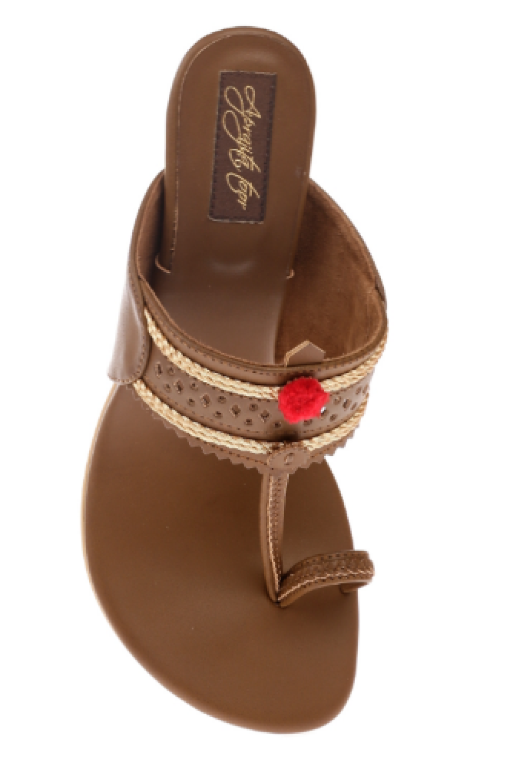 Classic kolhapuri shoes with delicate zari embroidery and a pom pom.