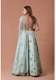 Tags: Mint green, raw silk, lehenga, gold embroidery, sheer-back, tassel, embellished blouse