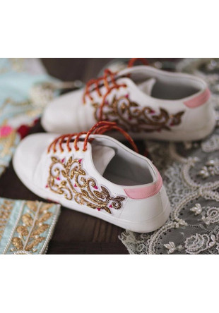 A new chic look with embellished handcrafted zardosi paired with plush low tops, the ‘Lola’ are made of leather from the inside and leatherette on the outside.