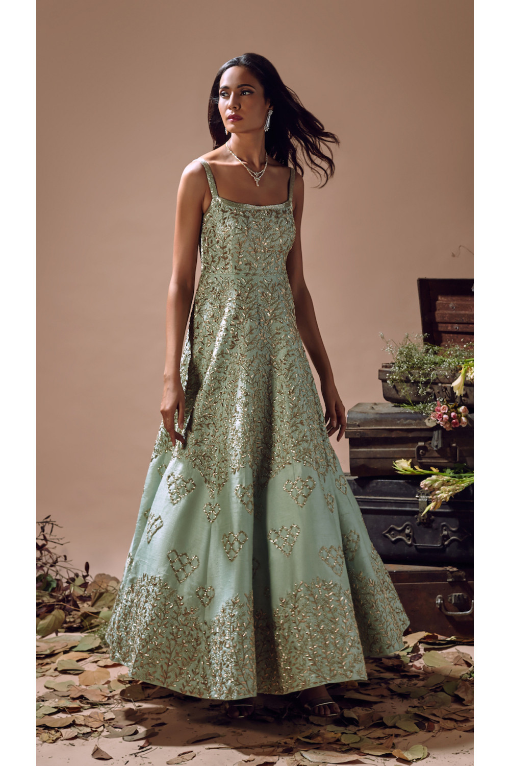 Tags: Mint gown, mishru, mint blue gown, embroidered gown