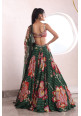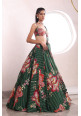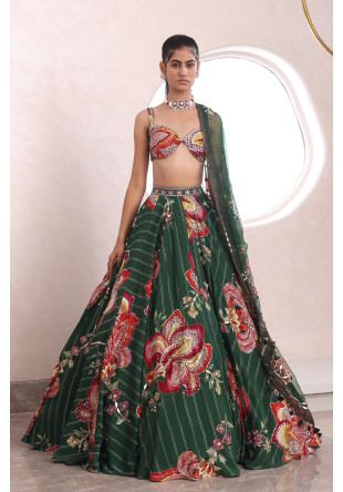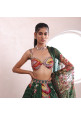 Green organza embroidered lehenga with a matching blouse and dupatta